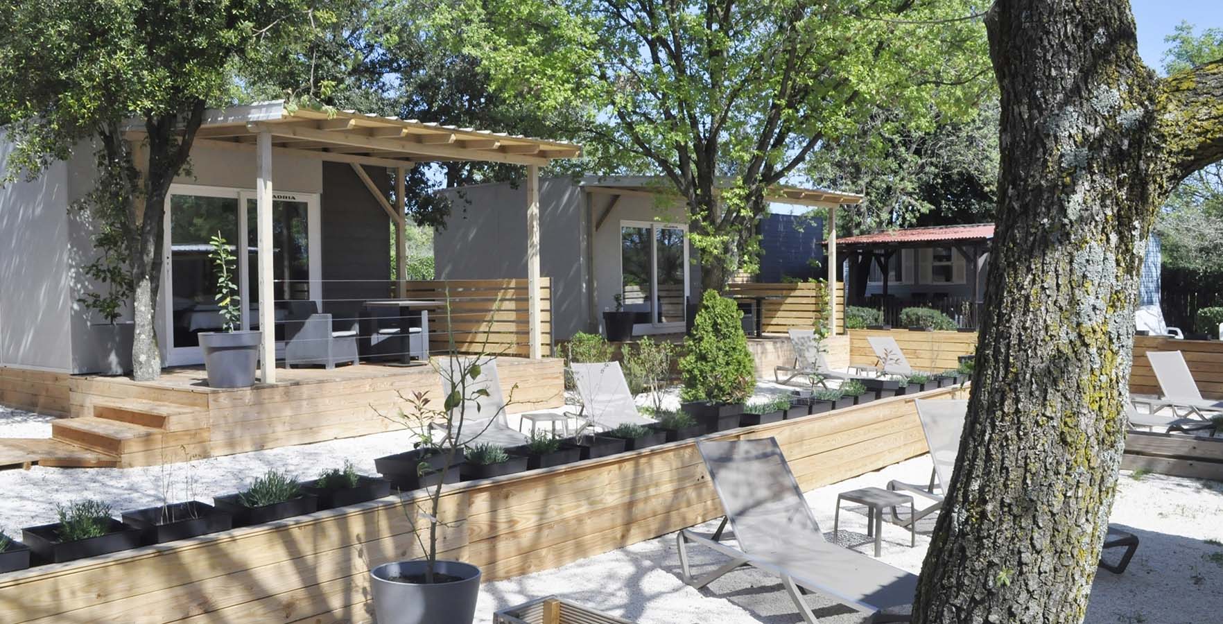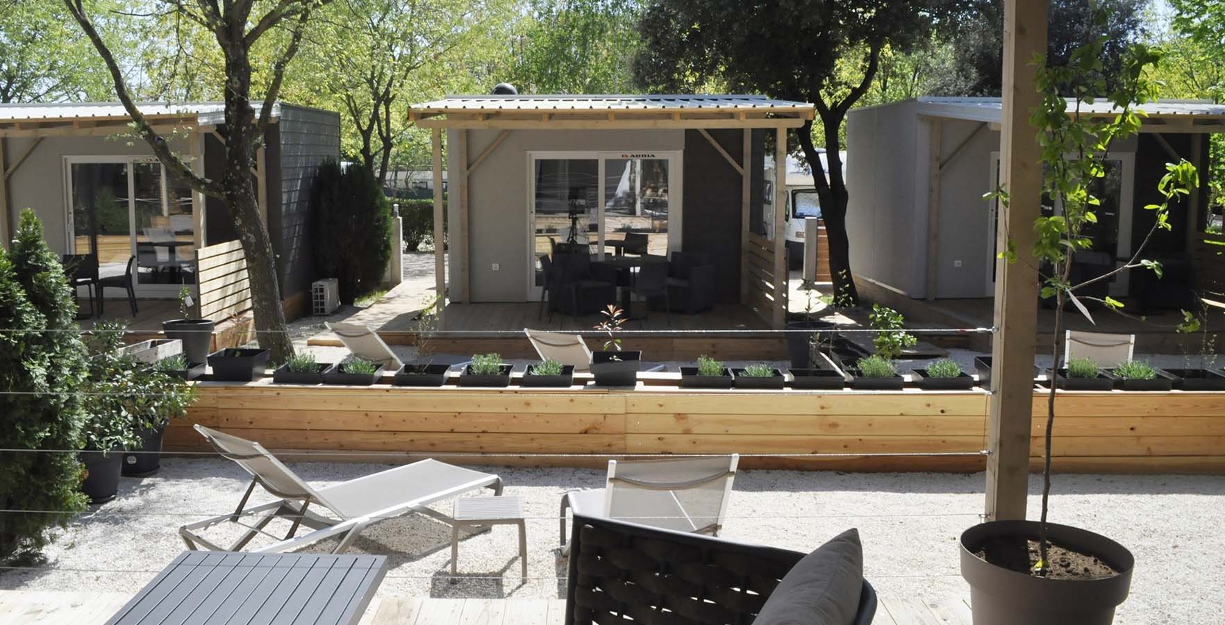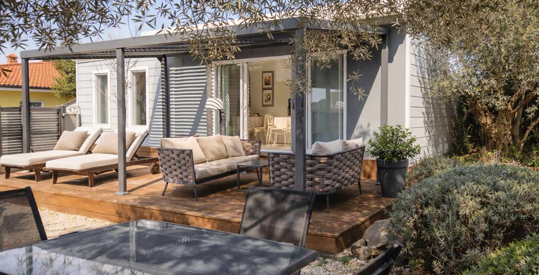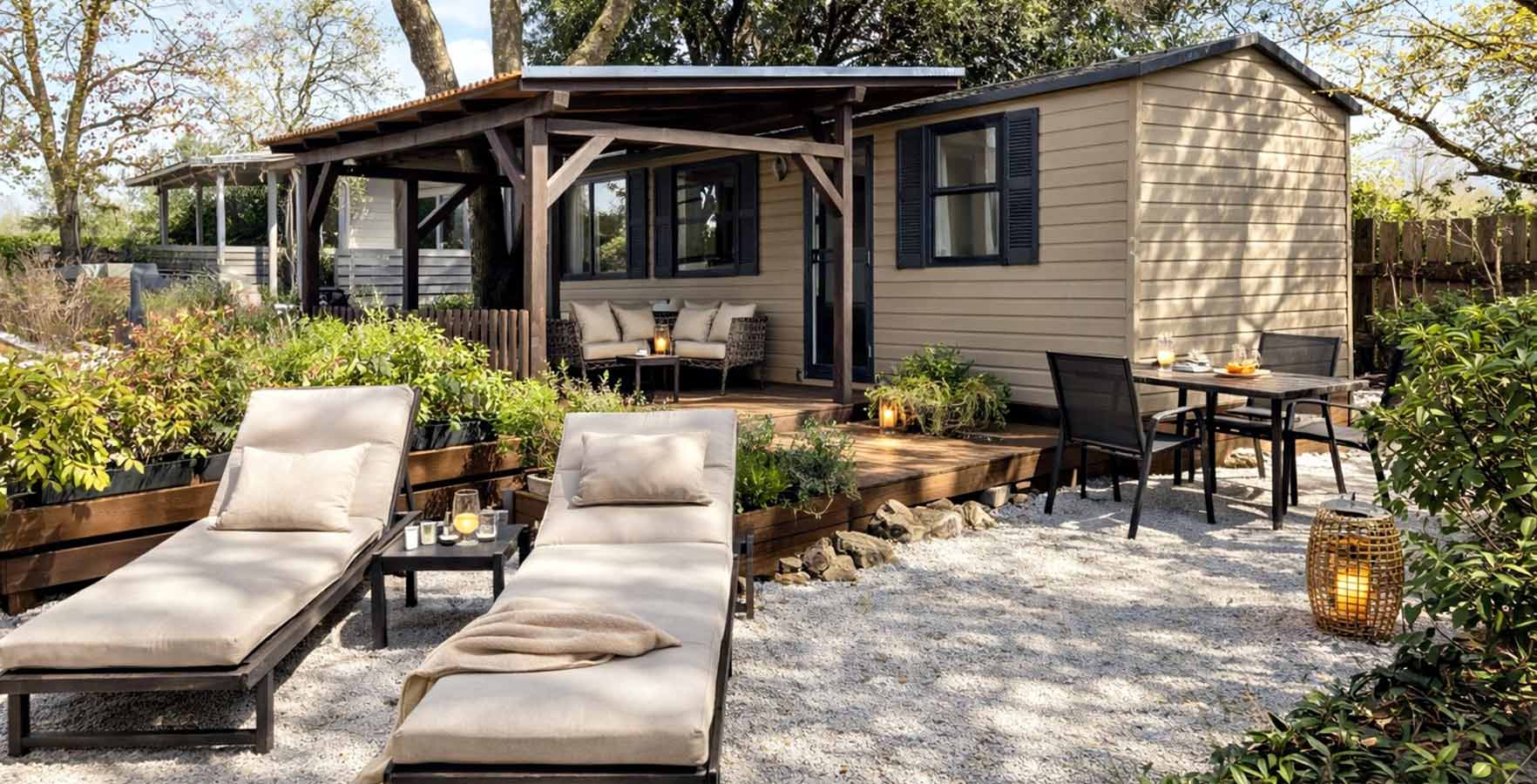 Behalve op staanplaatsen biedt de camping ook accommodatie in uitstekend uitgeruste mobile homes met een keuken, een kamer, een badkamer en een terras met loungemeubilair. Sommige zijn exclusief gereserveerd voor koppels, terwijl in anderen kinderen vanaf 12 jaar en huisdieren zijn toegestaan.