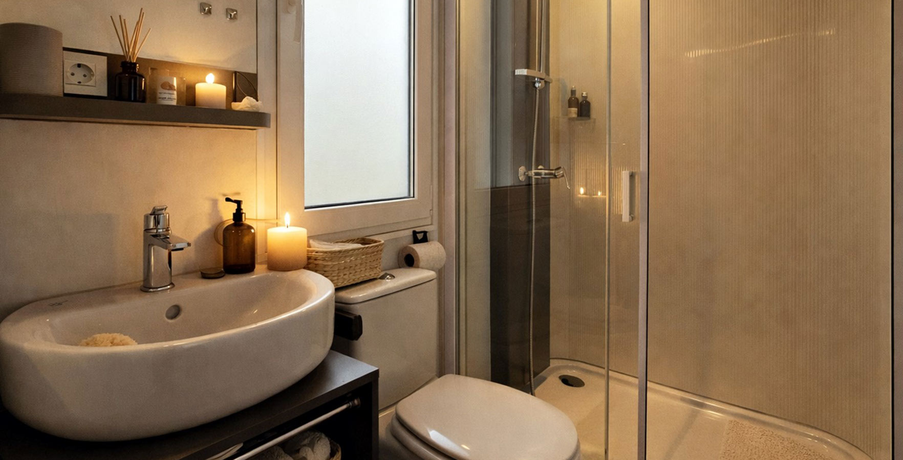 Het moderne sanitaire knooppunt heeft in het binnen gedeelte douches, toiletten en ruimtes voor persoonlijke hygiëne met wastafels, terwijl zich in het overdekte buitengedeelte een ruimte voor het wassen van kleding en de afwas, een wasmachine en extra wastafels bevinden.