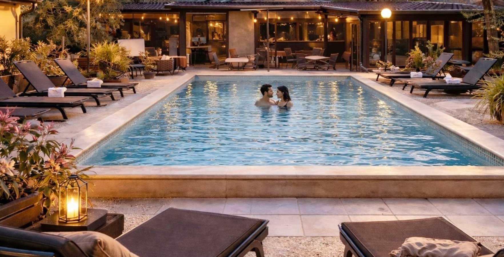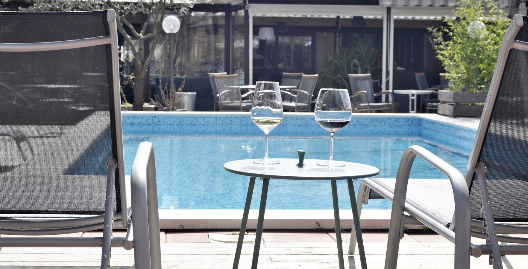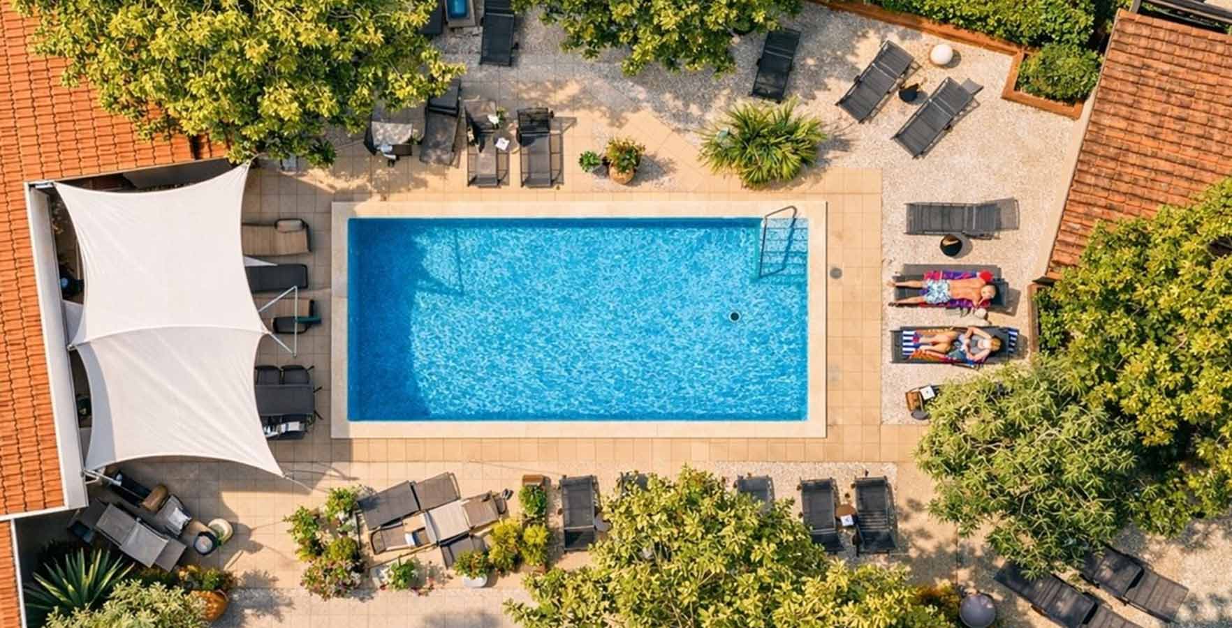 - zwembad met comfortabele ligstoelen en banken