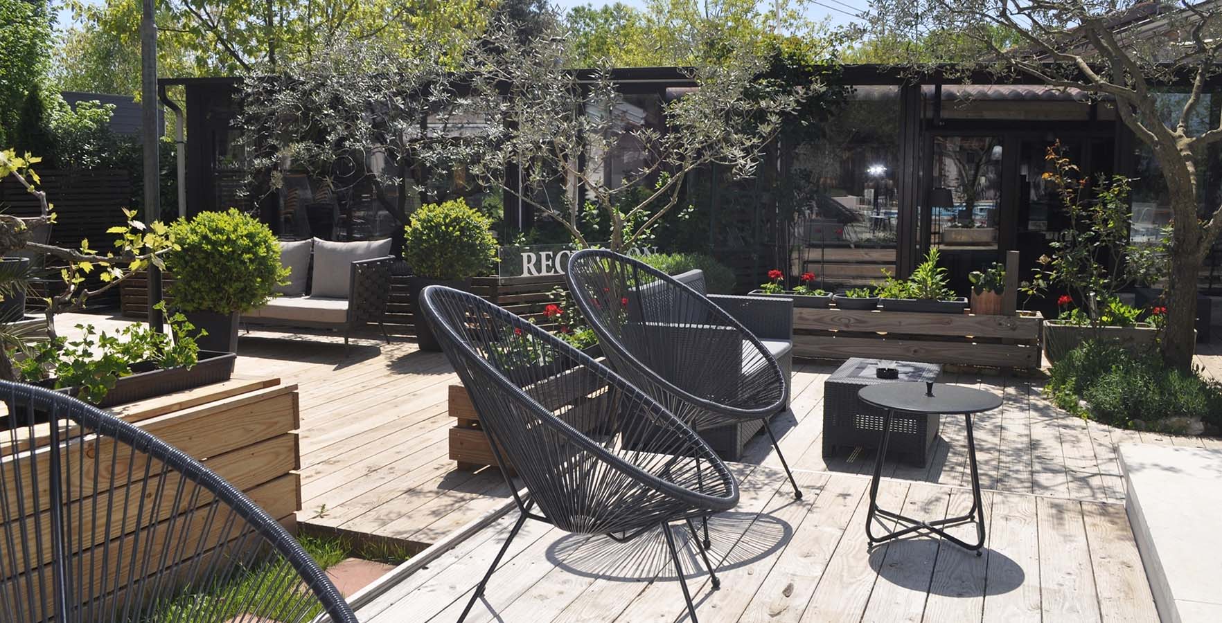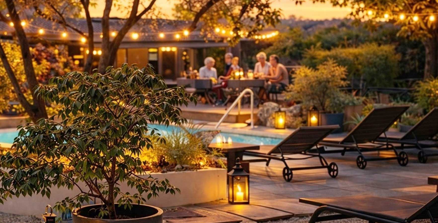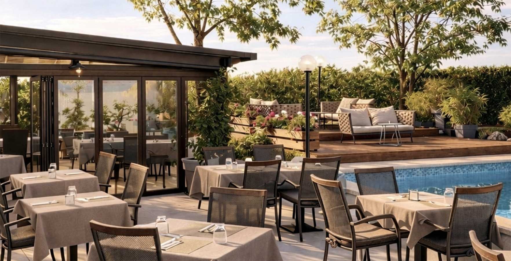 - zwembad met comfortabele ligstoelen en banken